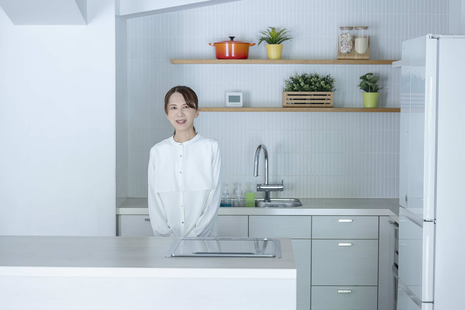 引っ越しを機にビルトイン浄水器を設置し、料理はもちろん、食材を洗うときも浄水を使うように。今ではそれがすっかり日常になっている。